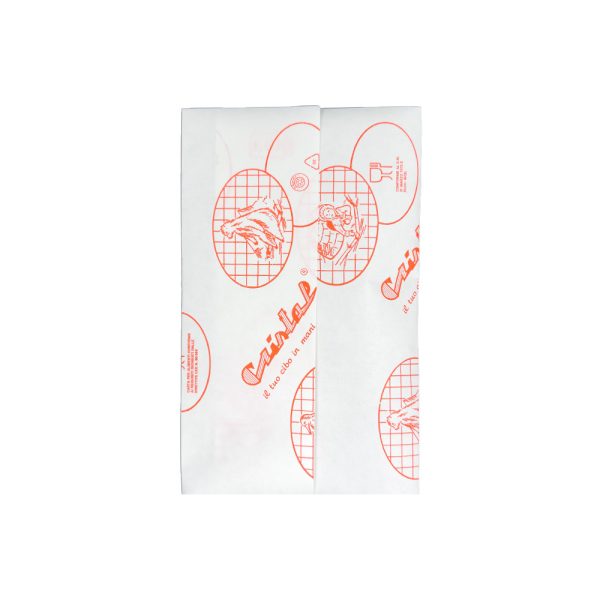 Grazie alla struttura accoppiata carta + film Cristal, offre un’eccellente barriera contro umidità e grassi, mantenendo inalterate le caratteristiche organolettiche degli alimenti. Il lato interno liscio e impermeabile evita perdite e trasudazioni, mentre la superficie esterna in carta consente una facile scrittura e personalizzazione.