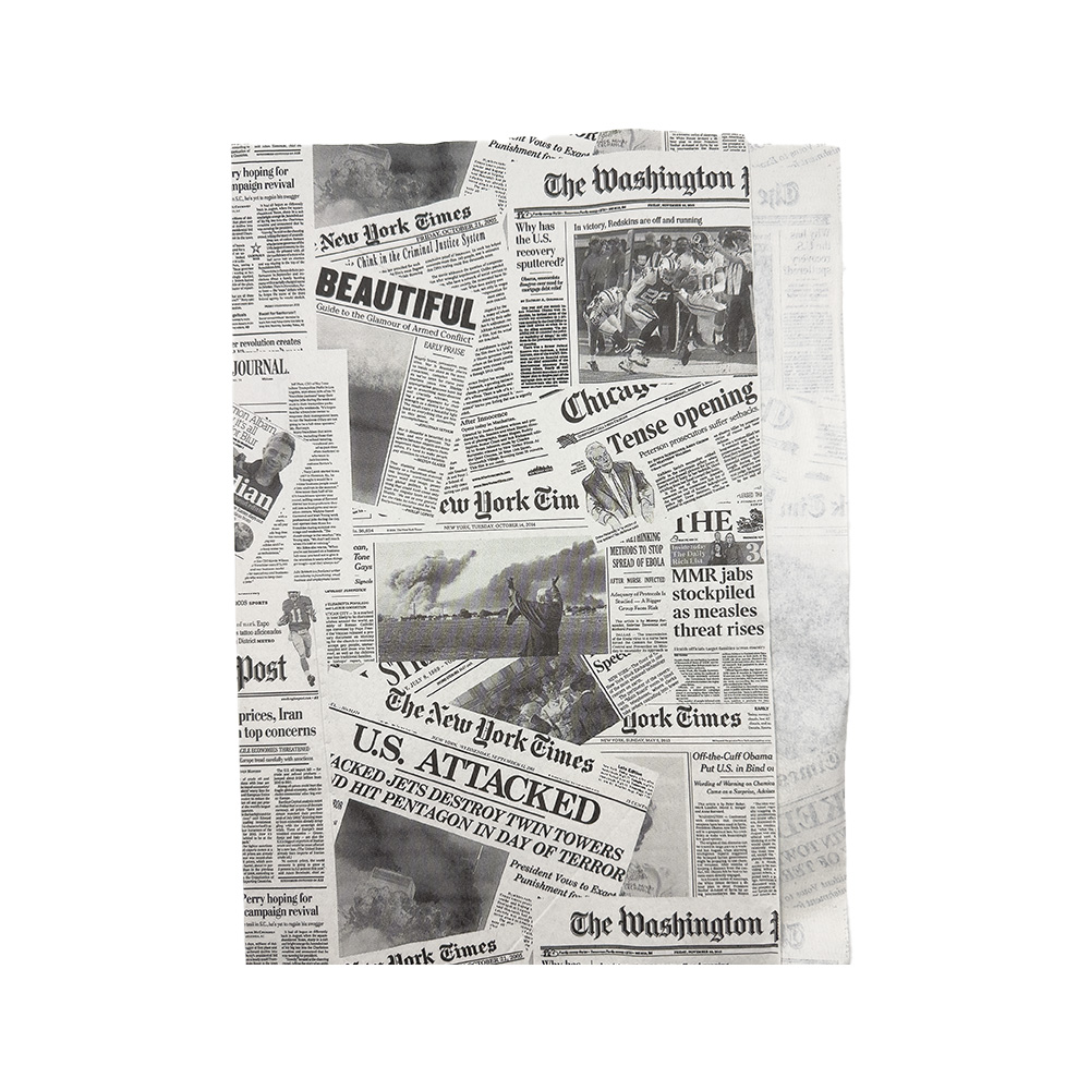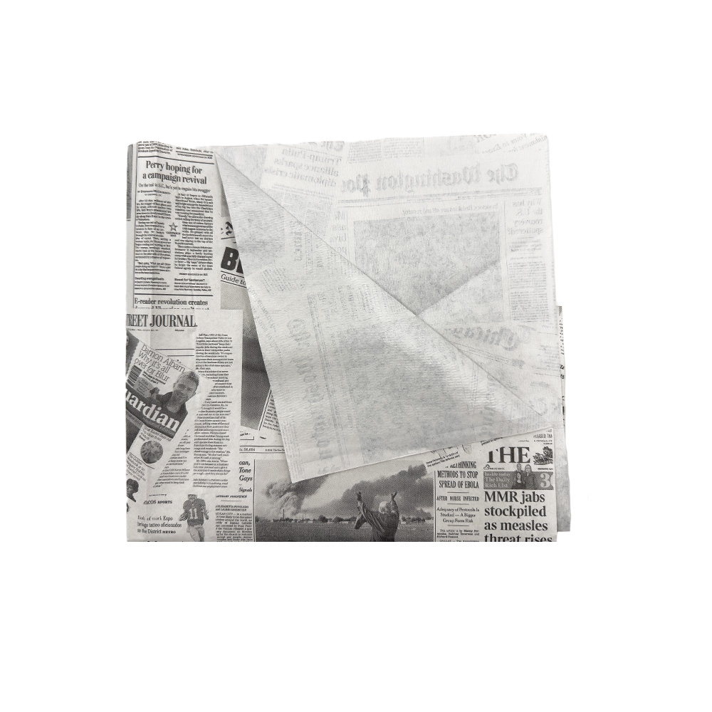 Grazie all’accoppiatura con PE idoneo al contatto alimentare, assicurano massima igiene e resistenza a umidità e grassi, mantenendo gli alimenti freschi e protetti. Il design con stampa giornale aggiunge un tocco creativo e moderno, ideale per ristoranti, gastronomie, paninoteche e attività d’asporto.