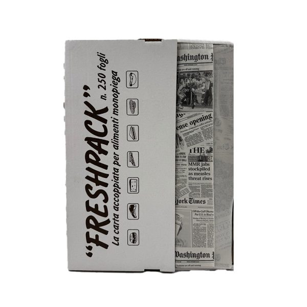 I fogli in carta kraft bianca accoppiati Fresh Pack con stampa giornale sono la soluzione ideale per il confezionamento e l’asporto di alimenti. Realizzati in formato 35×50 cm, offrono ampio spazio e praticità, perfetti per avvolgere panini, piadine, kebab, formaggi, salumi, street food e molto altro ancora.