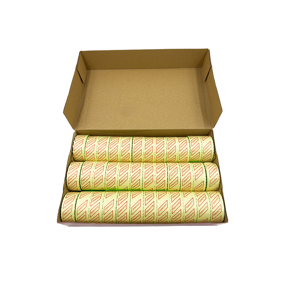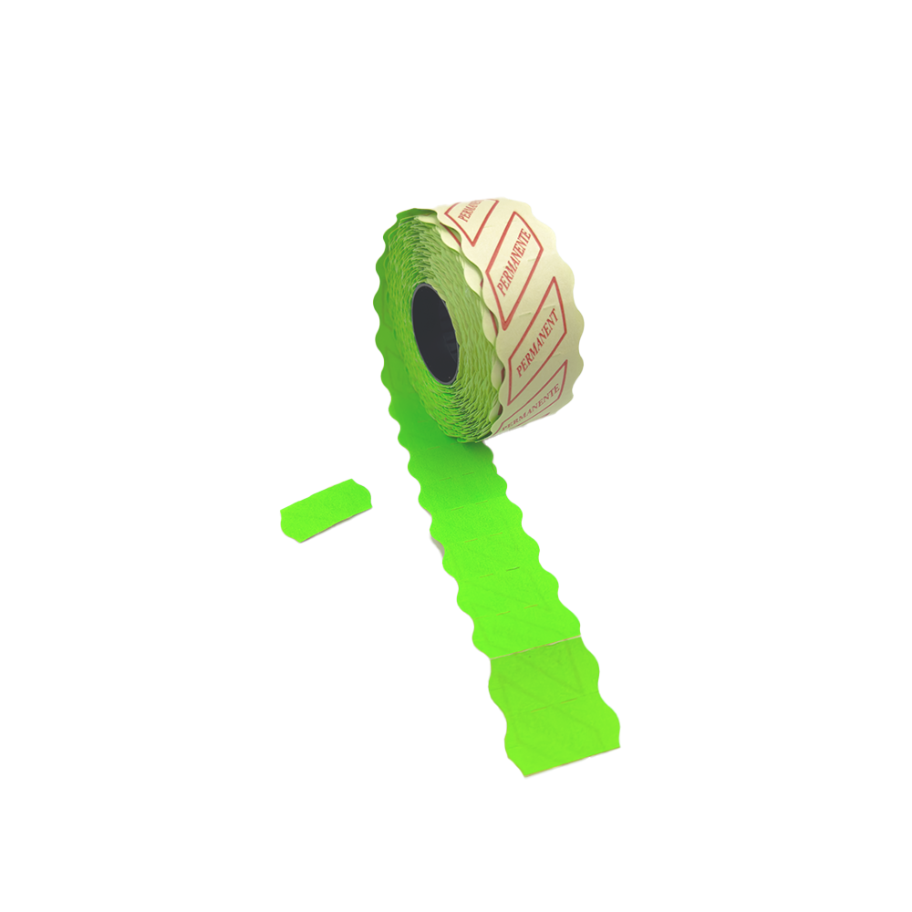 Il cartone contiene 36 rotoli di etichette adesive verdi formato 26×12 mm, ideali per l’utilizzo con pistole etichettatrici standard.
