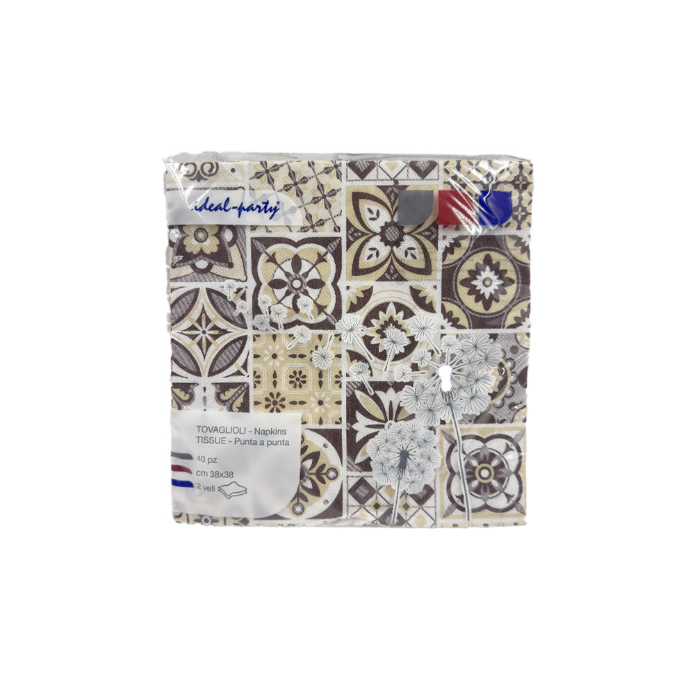 Tovaglioli in Carta Punta a Punta 38×38 Maiolica Cioccolato – 2 Veli (Conf. da 40 pezzi)
