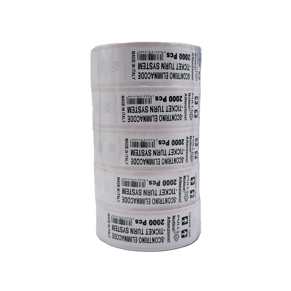 Ogni confezione contiene 5 rotoli da 2000 numeri consecutivi (dal numero 1 al 2000), compatibili con i più comuni distributori a forma di rondine. I numeri sono ben visibili, stampati in rosso per una lettura immediata anche a distanza.