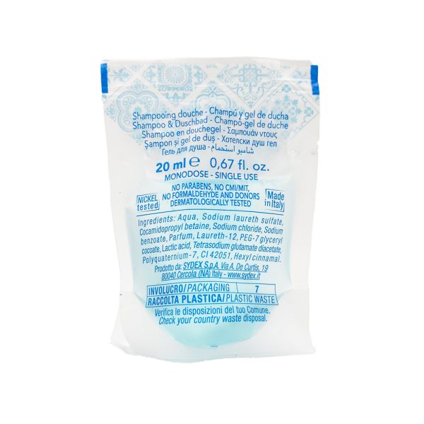 Ideali per l’utilizzo in strutture ricettive come hotel, bed & breakfast, centri d’accoglienza e altre realtà, le bustine da 20ml rappresentano un set cortesia perfetto per i tuoi ospiti. Ogni bustina contiene una combinazione delicata di shampoo e gel doccia, arricchita dalle note fresche e avvolgenti della linea Mediterranea, un prodotto di qualità che rispecchia la tradizione e la freschezza del nostro territorio.